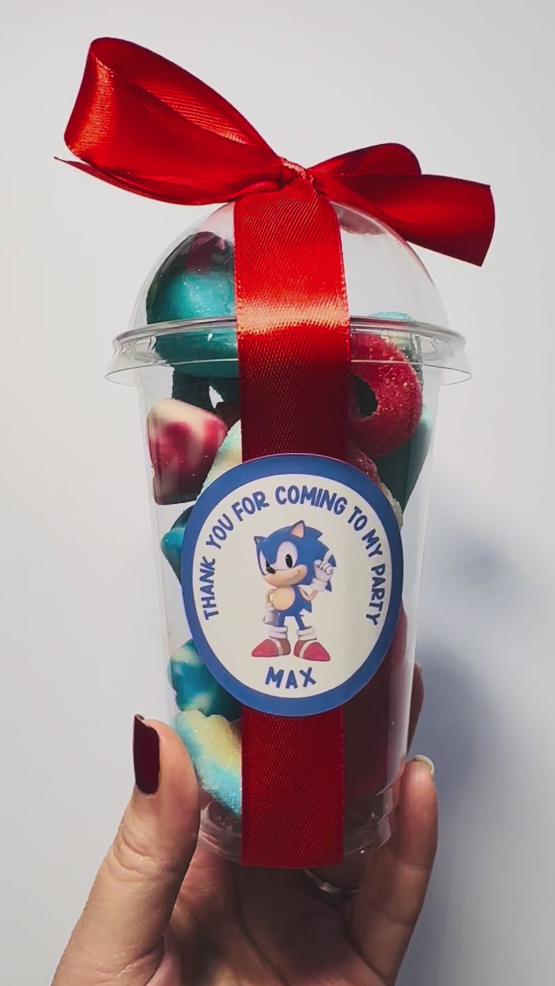 Gotta go fast? Race to the finish line of your party planning with these Super Sonic Sweet Cups! Perfect for little gamers, these personalised treats are "way past cool" and make the ultimate party favor for a Sonic-themed birthday bash. Forget boring plastic party bags—send your guests home with a power-up they will love!