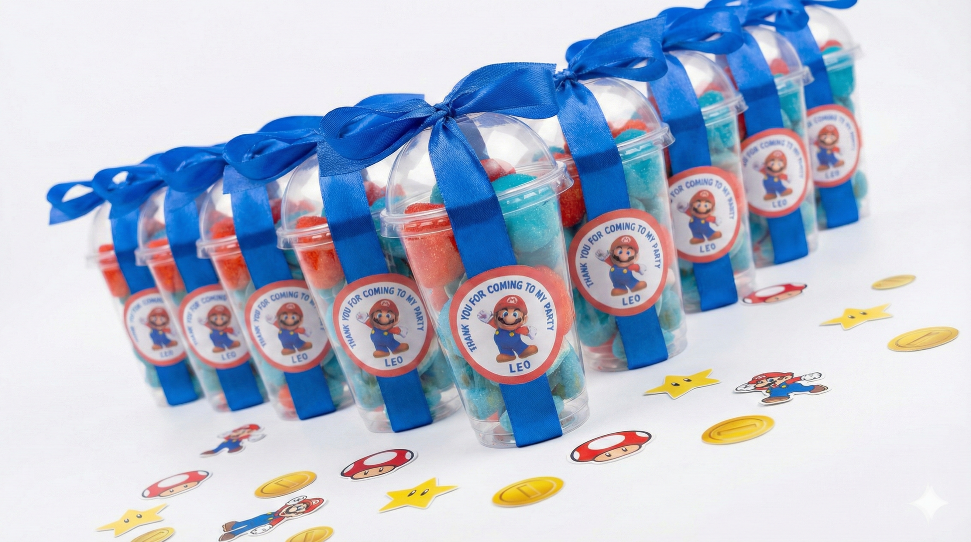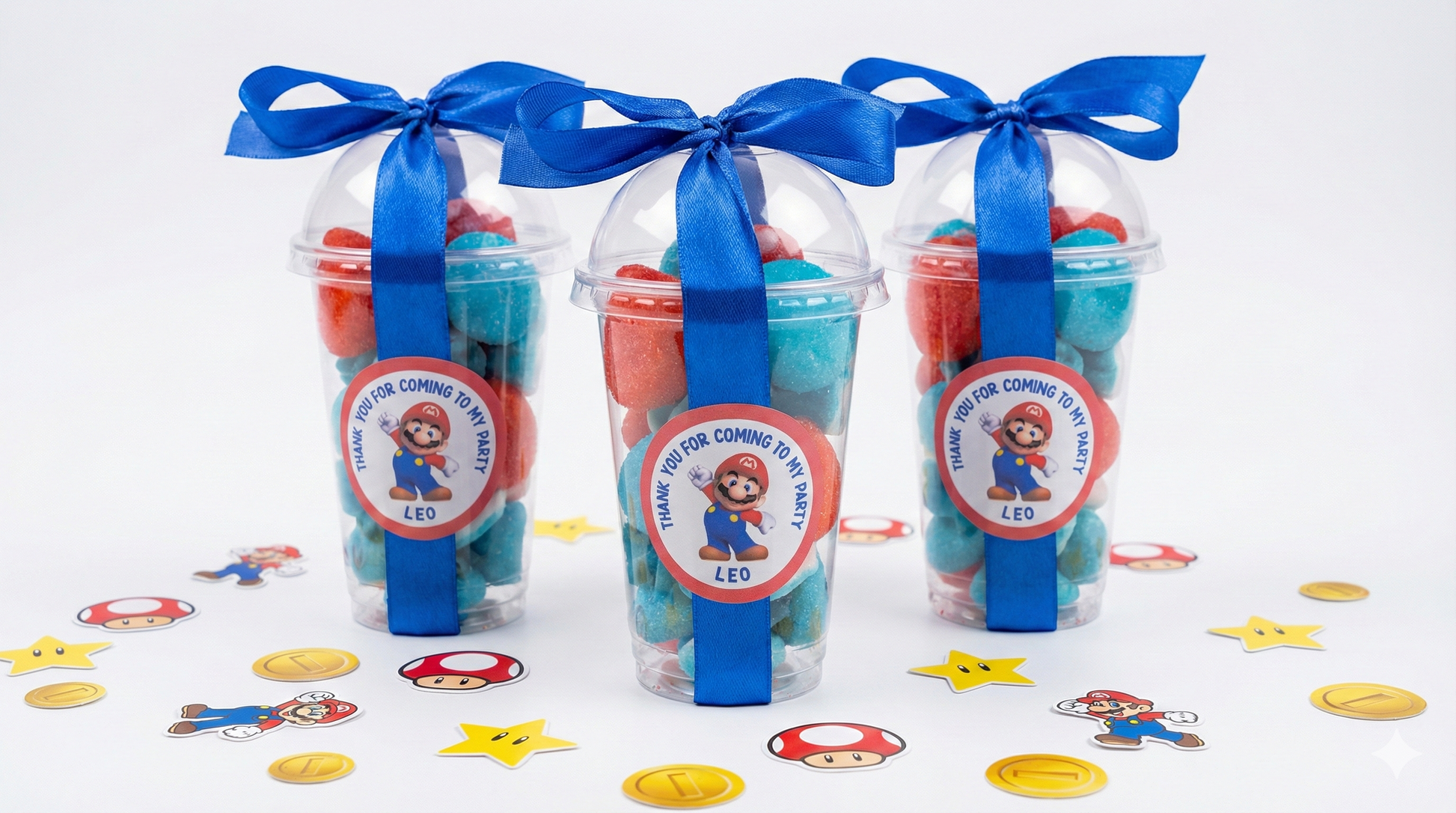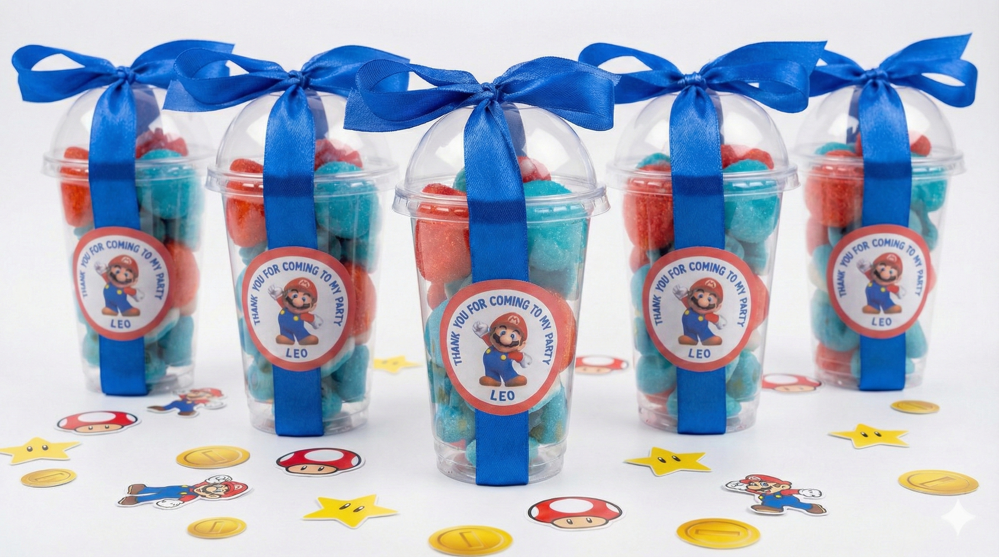Level up your party planning with these Personalised Super Mario Sweet Cups. Ditch the boring plastic loot bags and give your little gamers a treat worthy of the Mushroom Kingdom!